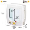 Swing 5 is a swing door made of sturdy plastic for cats and small dogs. It can be installed on different structures and materials: wood, glass and metal, or brick walls.Note: Be careful when installing the door on tempered glass or double-glazed glass (the holes must be factory drilled).Equipped with a four-way closing system that allows for four different uses of the door: exit only, entry only, exit and entry, full lock (your pet won’t be able to exit or enter). The swing door is equipped with Wind Stopper, to keep air draughts outside. In addition, a useful last-passage indicator lets you know whether your pet is at home or outside at a glimpse: the tab will be pointing at the direction of your cat’s last passage.