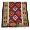 The Term Kilim is used to describe a pileless flat rug made for different use Kilims are generally woven with the slitweave technique. The slit refers to the gap left between two blocks of color. It is created by returning the weft around the last warp in a color area, and the weft of the adjacent color is later returned around the adjacent warp. Weavers pack the weft tightly to completely cover the warp and often favor diagonal patterns so as to avoid weakening the structure of the rug with vertical slits. It produces bold, sharp patterns that weavers enjoy creating with more freedom allowed than a plainweave. This is also why kilims are so closely associated with geometrical designs even though there are are kilims with floral designs as well.