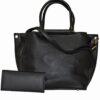Fino 2826+51125 Faux Leather Stud Design Zip Handbag with Purse – Black