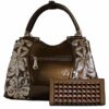 Our Quality Faux Leather Shoulder Bag is created with excellent Craftmanship and goes with Formal and Casual Outfits. This Bag is the Perfect Accessory with enough Space to carry all your Necessities, the Matching purse complements the handbag and carries all your Monetary Needs. The bottom of the bag is protected by four metal rivets from abrasion.