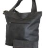 Fino Faux Leather Bag with Scarf Trim & Purse Set Dark Grey