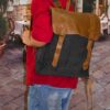 Fino SL-005 Canvas 15Inch Vintage Laptop Backpack with Genuine Leather Flap