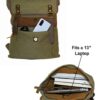 Our Vintage design with Top Quality Genuine Leather and Canvas, this is a casual, simple and generous backpack. The laptop backpack is ideal for School, College going Students for carrying Books, Notebooks and it has compartments to store basic necessities such as Keys, Stationaries, Calculator, Cellphone, Wallets, iPods, iPads, Laptop, Tablets, etc., which cover most of our life's necessities.