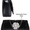 Fino T732 Satin Evening Flower Crossbody Clutch Bag with Chain – Midnight Black
