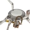 The Fire Maple FIRE-FLEET is a compact folding gas stove which has an output of 10202 btu (2990w) that is connected to the pre-heating gas generator tube , continues onto to the flexible fuel line before it connects or is attached to the gas canister. It boasts a large burner head for larger/better heat distribution on larger pots.