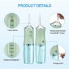 220ML Detachable Water Tank & 4 Multifunctional Nozzles – Upgraded 360ml large capacity detachable water tank, no need to constantly refill water. The 360° rotatable nozzle design allows you to easily clean the areas that are difficult to reach and prevents debris and dental plaque.