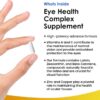 New Leaf’s Eye Health Complex is enriched with a powerful blend of essential nutrients specifically chosen to benefit your eyes. Our formula includes Vitamins A, B2, C, and E, along with Zinc and Copper, all well-known for their roles in maintaining healthy vision. Additionally, we’ve incorporated Lutein, Zeaxanthin, and Beta-Carotene, natural compounds found in the retina that are crucial for visual function. These ingredients come together to form a formidable combination that supports the resilience of your eyes.