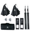 The Floxi 170W LED Softbox light kit Backdrop bundle contains two 85-watt LED bulbs . The bulbs are adjustable in terms of brightness and color. The bulbs have an option of changing between cool white or warmer yellow light. This Softbox Light kit uses an Infrared remote control which is very handy for switching the Lights on/off and changing between light colors This Softbox Light kit is Ideal for both video and photographic applications. The Floxi 170W softbox Light Kit includes 50*70 softboxes that soften light stream and remove shadows to make for perfect shooting. It also support 180°rotation,The backdrop that is included is PVC Vinyl 2.2m(W) x 3m(H) white / black reversible and is seamless and easy to keep clean. The backdrop cannot be folded as it has a solid 0.38mm aluminum pole that is attached to the backdrop. The benefit of having Pvc Vinyl Backdrop is not only for quality and durability but also because of the quick easy setup.