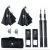 The Floxi 400W LED Softbox light kit contains two 200-watt LED bulbs . The bulbs are adjustable in terms of brightness and colour. The bulbs have an option of changing between cool white or warmer yellow light. This Softbox Light kit uses an Infrared remote control which is very handy for switching the Lights on/off and changing between light colors This Softbox Light kit is Ideal for both video and photographic applications. The Floxi 300W softbox Light Kit includes 50*70 softboxes that soften light stream and remove shadows to make for perfect shooting. It also support 180°rotation, easy to adjust.Includes Durable Lightweight metal light stand, adjustable length from 80cm to 200cm max.