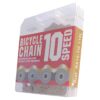 The Fluir 10 Speed Bicycle Chain is made from high quality carbon steel which offers good weight to strength ratio. The carbon steel is electroplated which increases durability and rust resistance.