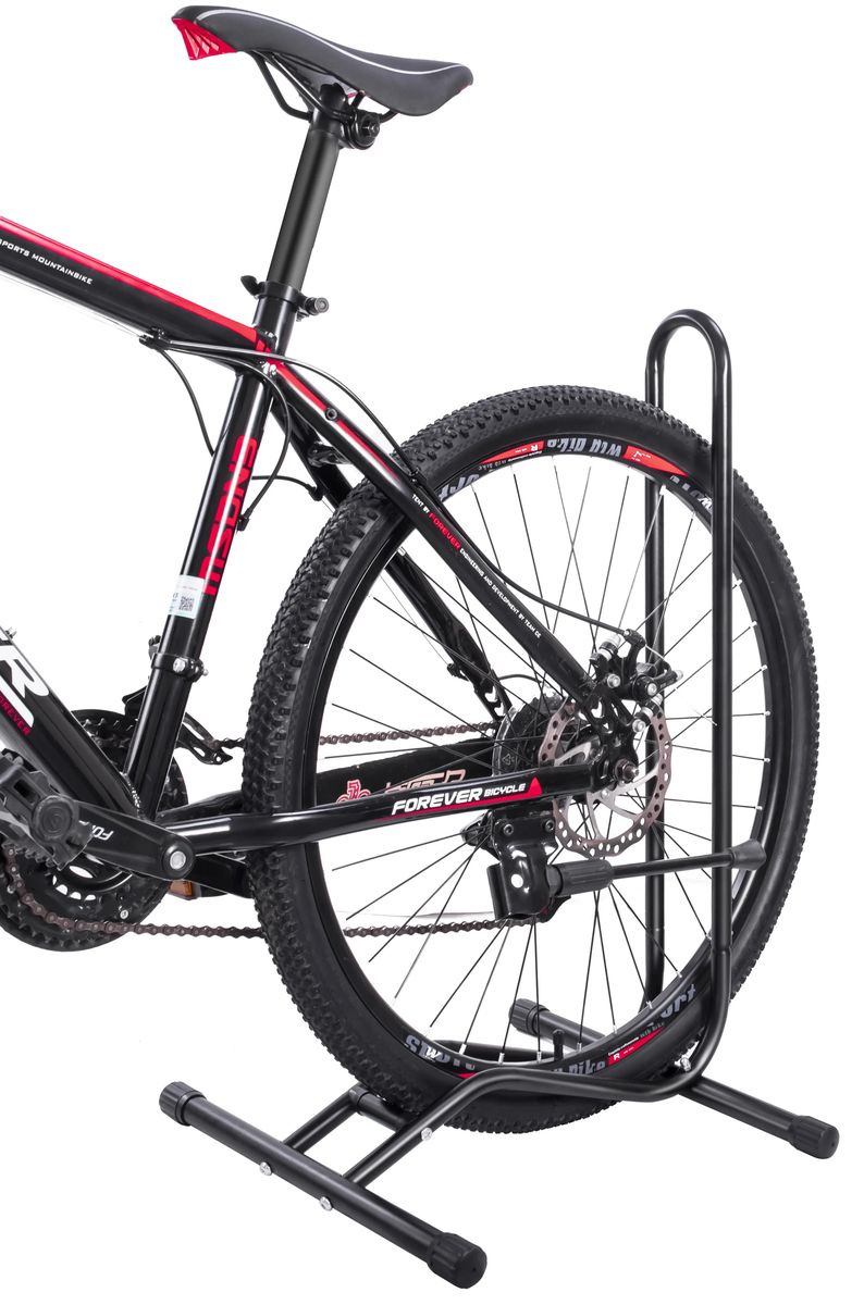 The Fluir Bicycle Floor Stand and Hanger is fully portable, no drilling required. It assembles in five minute and has non scratching floor grips.
