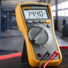 The Fluke 115 Digital Multimeter is a compact, general-purpose troubleshooting tool for field service technicians. Its simple, one-handed operation and compact design meet the needs of a wide variety of field service applications. It measures True RMS voltage and current with 6000 count resolution, as well as resistance, continuity, frequency, and capacitance, making it ideal for quick verifications.