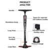 This alloy floor air cycling pump is perfect for inflating bicycles, motorcycles, car wheels and inflatable toys and balls. It has a pressure gauge and Schrader and Presta Dunlop valves.