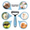 – De-shedding: Use the 17-teeth side to thin and remove loose undercoat hair.