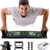 14-in-1 Multi-Gym Equipment This new 14-in-1 design push up board featured with different color-coded push-up board targets specifics Upper Body muscles training (green-back,blue-shoulder,yellow-triceps, red-chest) by moving the handles to different color-coded