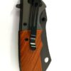 - Introducing a meticulously crafted folding pocket knife, designed for both functionality and style. This knife features a beautifully polished wood handle that provides a warm, natural grip, ensuring comfort during use. The blade is enhanced with a strategically placed hole, allowing for easy one-handed opening and adding a touch of uniqueness to its design. The flip-open mechanism is smooth and efficient, enabling quick access in any situation. This knife is not only a practical tool for everyday tasks but also a stunning addition to any collection, blending classic aesthetics with modern usability. Whether for outdoor adventures, camping trips, or daily carry, this folding pocket knife is a reliable companion that embodies both elegance and performance.