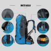 Free Knight 60L Water Resistant Camping Backpack with Rain Cover – Cyan