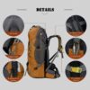 Free Knight 60L Water Resistant Camping Backpack with Rain Cover – Golden Brown