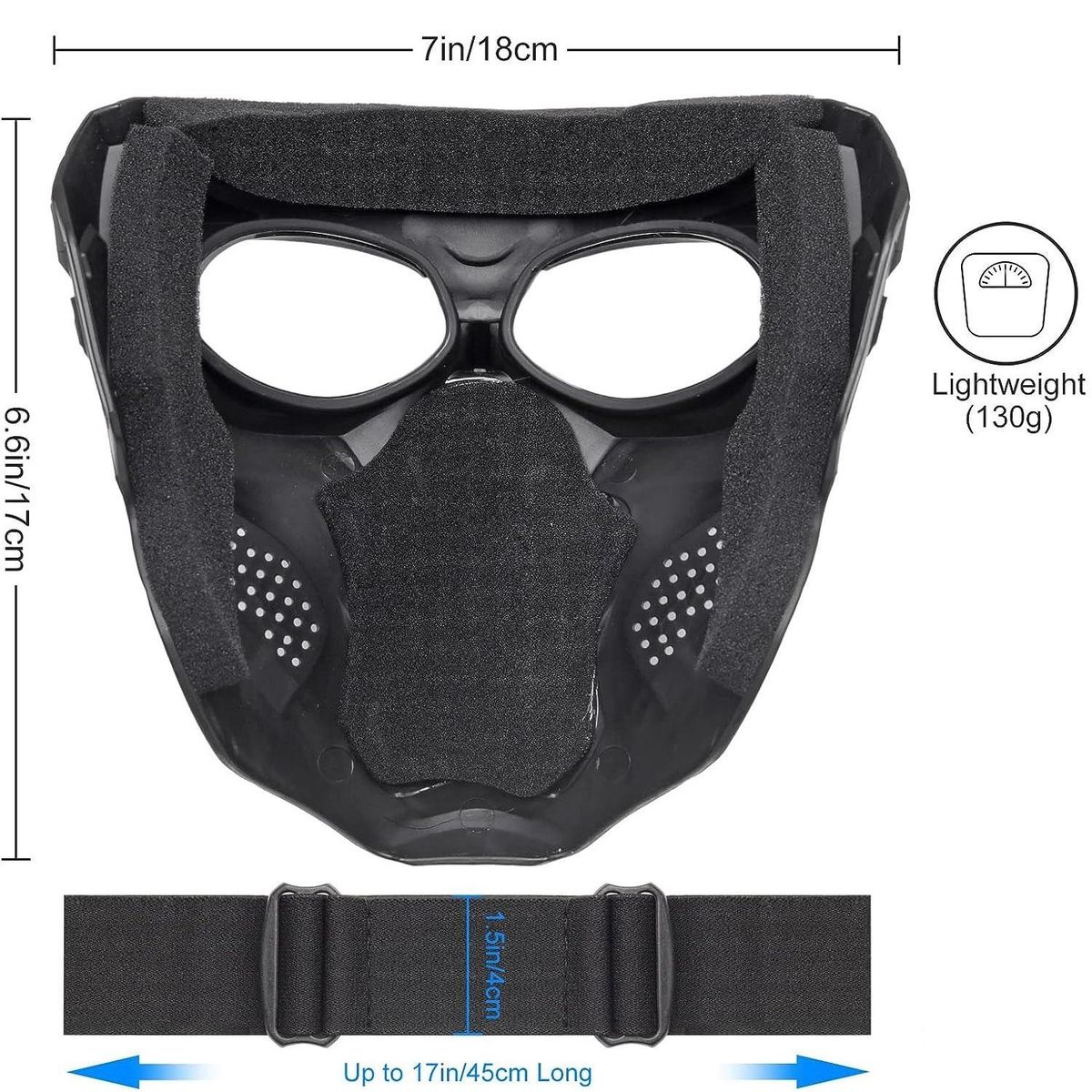 – the paintball mask is for outdoor sports, such as electric skateboarding, mountain biking cycling, motorcycling, riding, snowmobile, airsoft, cs, paintball game, skiing, and riding. Or costume ball, halloween party and movie props. A good gift for your friends or family. Great eye protection as well as face coverage from dirt and gravel without limited vision.