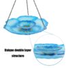 3. Durable & Strong: The bird bath is made of thick and selected glass, which is easy to clean and can withstand all kinds of weather. The chain is made of painted metal, which is not easy to rust.