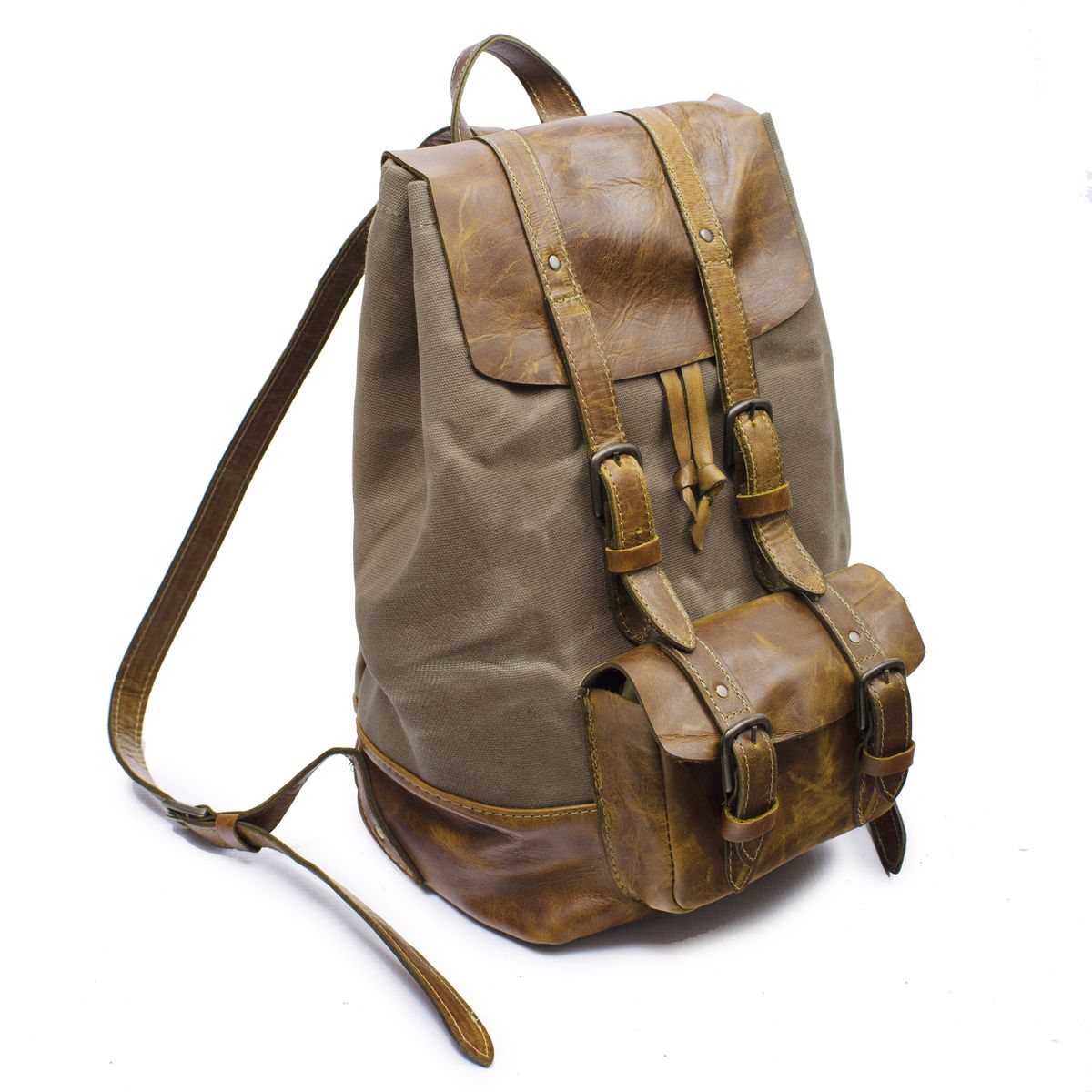Genuine Leather and Heavy Waxed Cotton Canvas Backpack – Sand & Pecan Small