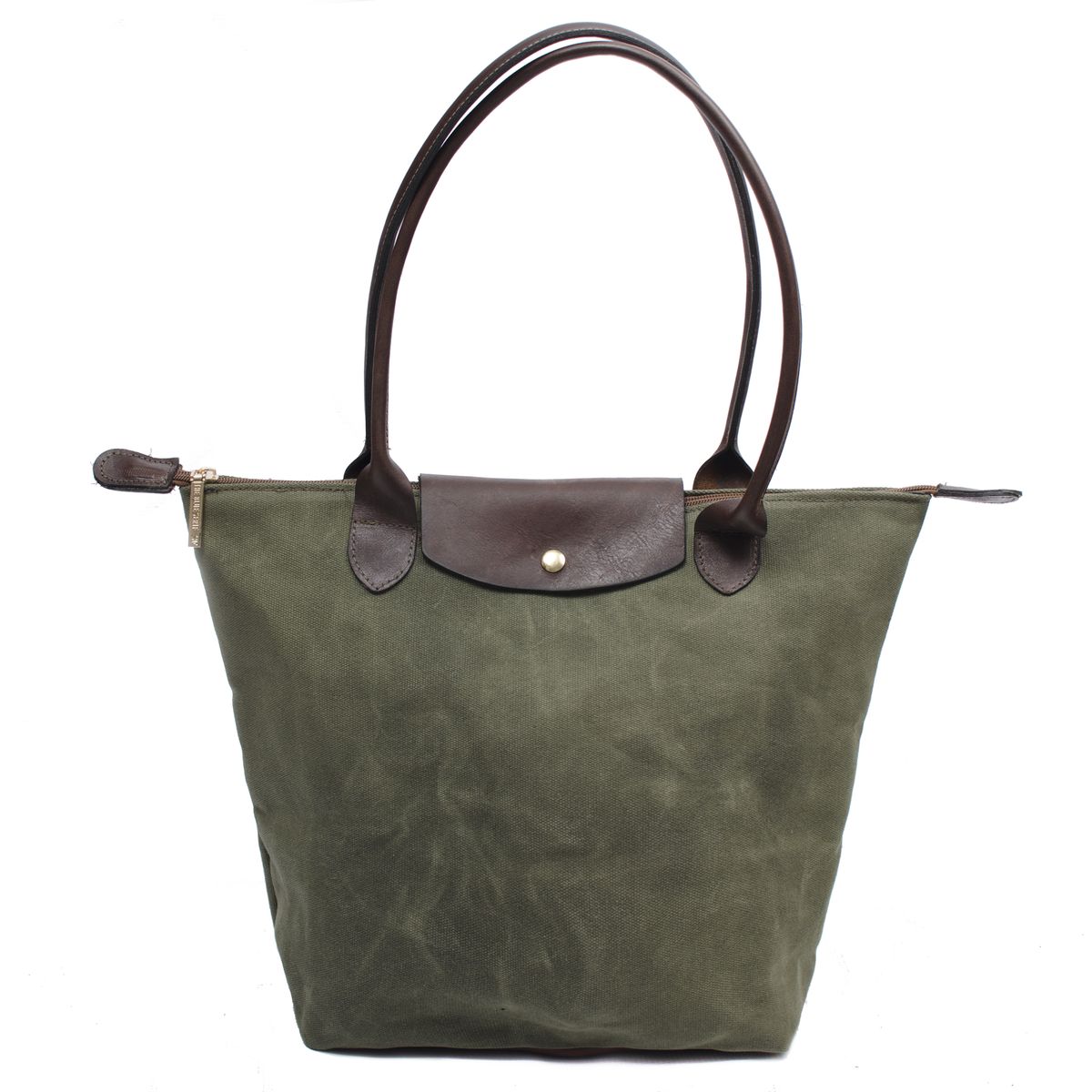 Genuine Leather and Real Waxed Canvas Tote – Khaki