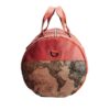 Genuine Leather Duffel Bag – World Map Illustrated – Cherry
