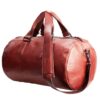 Genuine Leather Duffel Bag – World Map Illustrated – Saddle