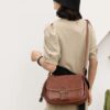 Genuine leather Shoulder Saddle Handbag With Extra Safety Flap
