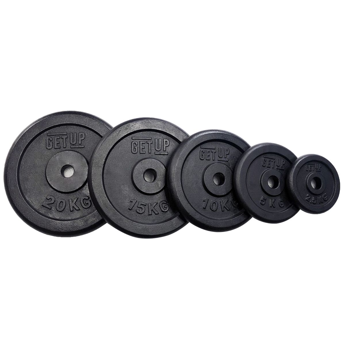 GetUp Weight plate with a 30mm diameter center hole and made from cast iron with a hammer tone finish. The GetUp weight plate is ideal for strength training.