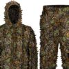 Ghillie suit for hunting uses a leaf based pattern, which maximizes the realistic look of the ghillie suit. This leafy camo suit is great for heavily wooded areas.