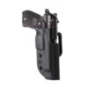 Holster is supplied with a high ride belt loop as well as a paddle attachment, to fit a belt width of up to 2″