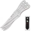 Designed by custom knife maker and international knife throwing hall of fame member, gil hibben, you can expect to improve your throwing skills when you practice with the hibben throwing knives triple set. Each one-piece, 9 overall, 3cr13 stainless steel throwing knife has a 5? clip point blade with a satin finish. Each handle has three weight-reducing through-holes and is gently curved for a comfortable grip when throwing. The three knives all fit in a tough nylon belt sheath with a hook and loop strap to secure the handles and the hibben knives logo