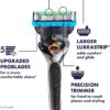 The Gillette ProGlide razor refills for men provide the iconic Gillette shave precision with comfort and style. The 5-bladed men’s razor refills feature a larger lubrication strip for added comfort and glide to your shave. Our simple yet effective blade stabilization maintains optimal blade spacing for comfort while allowing the blades to adjust to the contours of your face. The Precision Trimmer on the back is perfect for styling facial hair, especially in hard-to-reach areas such as under the nose and the sideburns. With soft micro fins that gently stretch and smooth your skin, and a micro comb that helps guide your hair for a close shave with our thinnest blades.