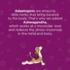 Adaptogens are amazing little herbs that bring balance to the body. Thatâs why we added Ashwagandha, which works at a molecular level and reduces the stress responses in the mind and body.