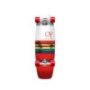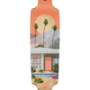 Directional cut away longboard with drop-through trucks and slight side-to-side concave.