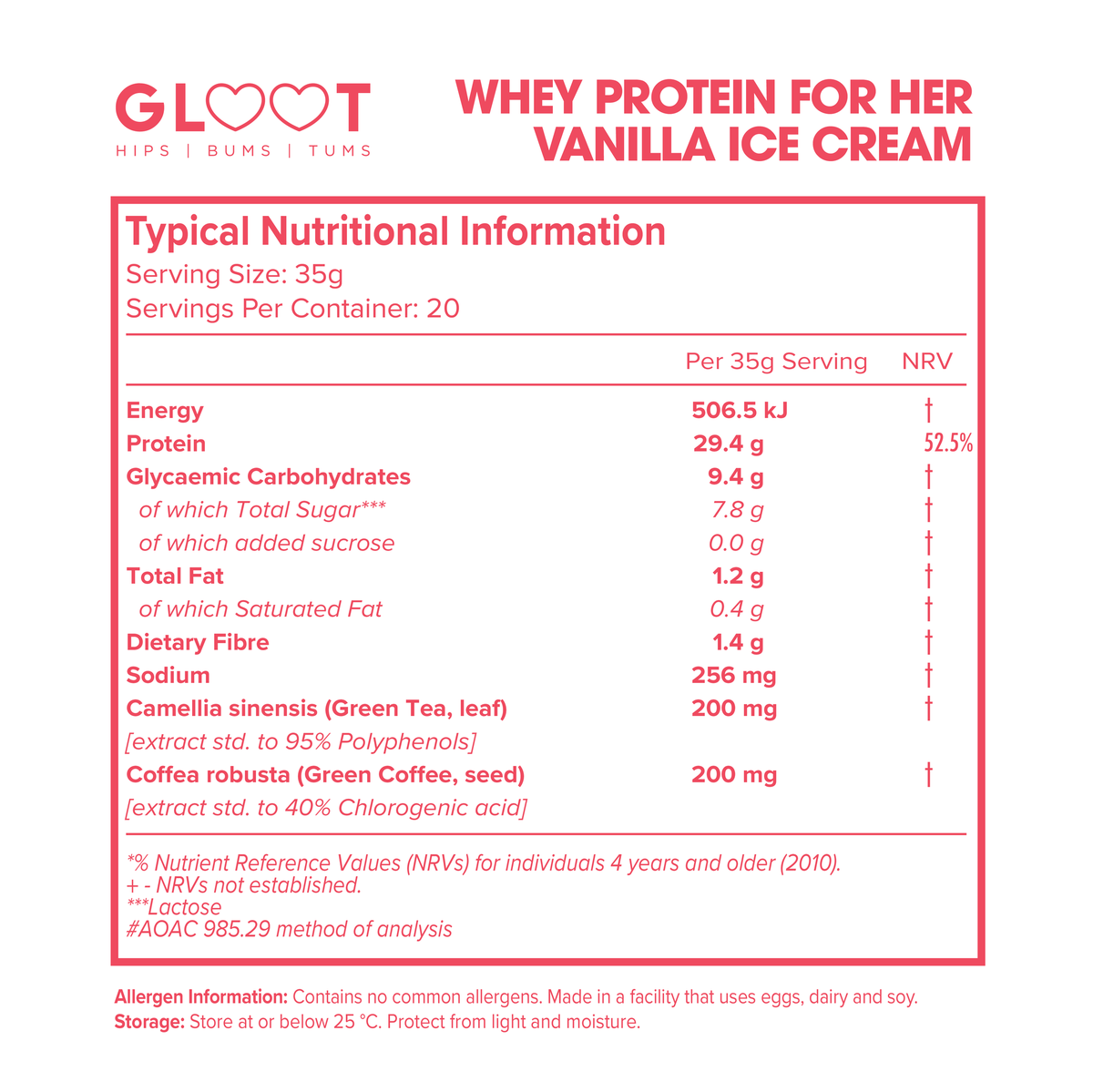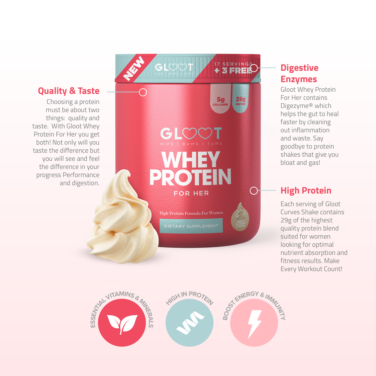Choosing a protein must be about two things: quality and taste. With Gloot Whey Protein For Her you get both! Not only will you taste the difference but you will see and feel the difference in your progress Performance and digestion.