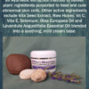 LAVANDULA ESSENTIAL OIL – Has anti-bacterial properties and is known to aid in the production of new healthy skin cells. It is also known for its calming and soothing properties.