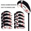 This product is a 10-pieces golf club iron head protective cover with a white marker.