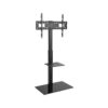 The metal TV floor stand with its solid glass base can be assembled in only a few minutes. With a swivel range of 35 , the stand offers you greater flexibility than standard TV mounts. You can also use the practical storage board for remote controls, laptops and other accessories.