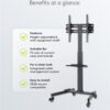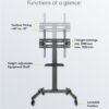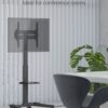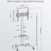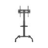 With 4 lockable castors, the TV stand is perfect for use at conferences and in teaching and reception areas. The telescopic stand, the tilt mount and 8 different height levels ensure maximum flexibility. The height adjustment is designed to be particularly user-friendly thanks to the snap-lock system.