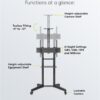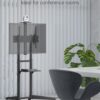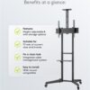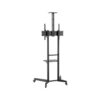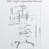With 4 castors, the unit is mobile and ideally suited for use with TVs at home, in offices or at conferences. Two lockable castors ensure a secure stand. 4 height levels of the mounting plate and tool-free tilting allow for optimally adjusting the stand. The height-adjustable camera shelf offers an ideal solution for telephone conferences.