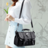 – The bag is made of PU, and well-made stitching feels soft and cozy. The lining is made of durable polyester fabric, with quality hardware