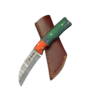 1 x Handmade Damascus Skinning Knife Orange & Grey Handle With Leather Sheath