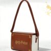 Step into the magical world of Hogwarts with this exquisite Harry Potter-themed shoulder bag, designed to resemble a vintage book. Crafted from high-quality vegan leather in a classic brown tone, this bag is perfect for fans who want to carry a piece of the wizarding world with them every day. The front cover features the iconic “Harry Potter” logo in gold, giving it an authentic, timeless feel.