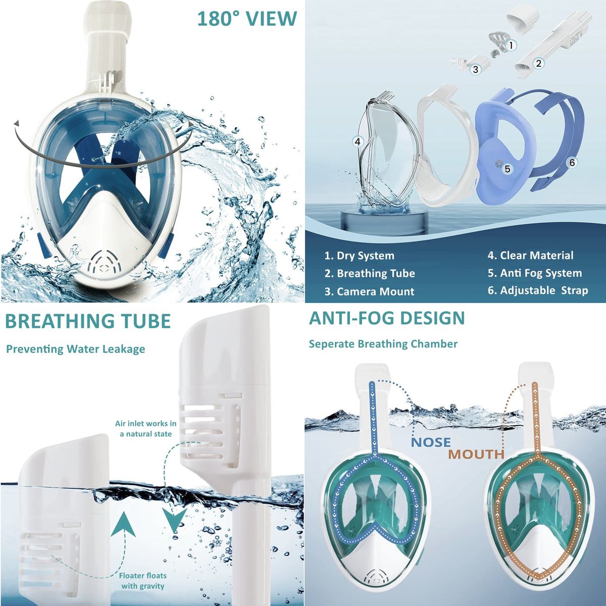 Heartdeco Full Face Anti-Fog-Leak Snorkel Diving Mask with GoPro Mount – L-XL