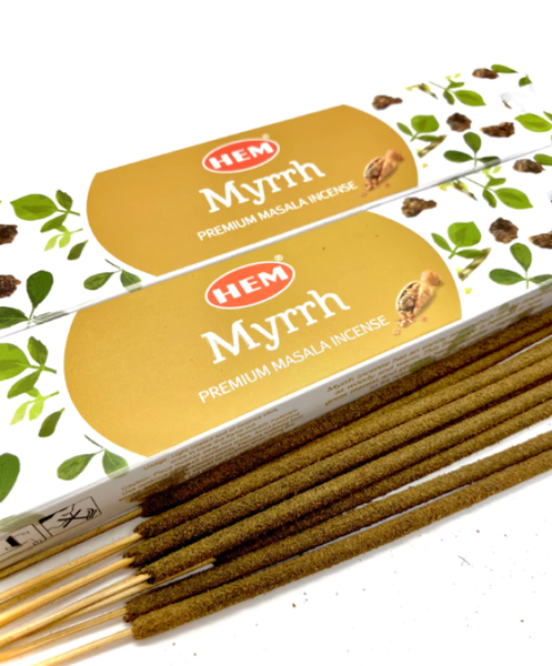 HEM Myrrh premium masala incense sticks are made out of resins extracted from the trees in Burseraceae family.