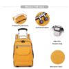 – Trolley Backpack with 1 zip main compartment, 2 front pockets, 2 side pockets, slip pocket on the back around the padded and adjustable shoulder straps.