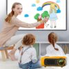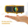 -[Small size & Lightweight]: Featuring a unique and cute design, the size of the mini projector is 135x97x50mm, only weighs 0.65 kg. It is small and lightweight. You can pack it in your packet and take it everywhere,enjoy the moive at anytime anywhere.