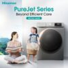 - Washer & Dryer 2 in 1 – 10Kg Washing Capacity – 6Kg Drying Capacity – 1400 RPM Max Spin Speed – Titanium Silver Finish – Stainless Steel Drum – Pure Steam with Jet Wash – Pause & Add Function – Durable Inverter Motor for Less Vibration, Less Noise